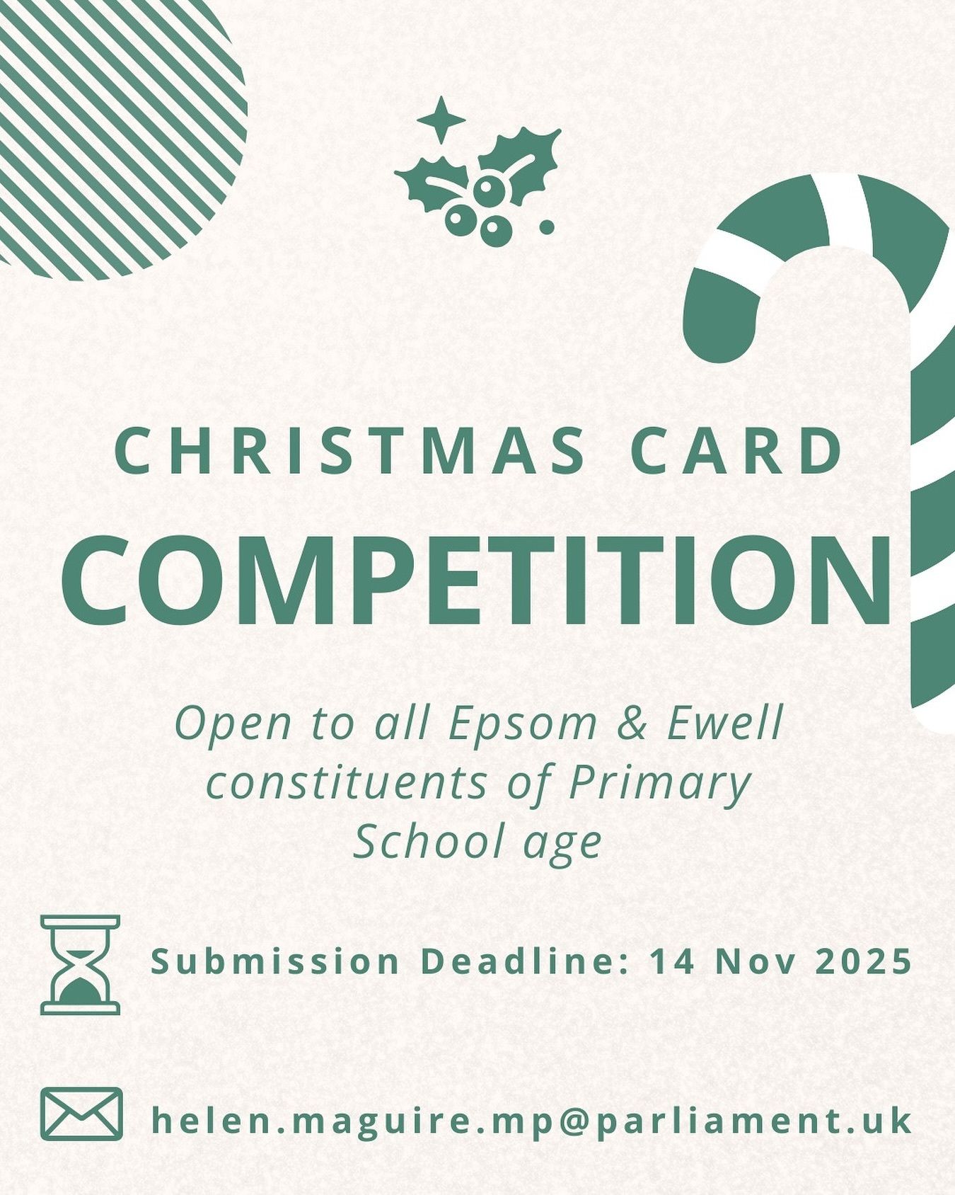 Our local MP Helen Maguire is inviting young creatives from Epsom and Ewell to design her official Christmas card for 2025! The competition is open to all primary school aged children living in the constituency. A great excuse to bring all the felt tips and glitters out!